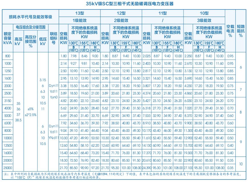 電壓等級35kV,變壓器容量30~20000kVA,該變壓器是我公司在消化吸收引進(jìn)技術(shù)的基礎(chǔ)上硏制開發(fā)的35kV級絕緣干式變壓器,產(chǎn)品的設(shè)計(jì)與制造均滿足IEC60076.GB1094.GB/T10228等標(biāo)準(zhǔn)的要求,產(chǎn)品將35kV電網(wǎng)電源直接降低為400V配電電源或10kV輸電電源為用戶供電。具有顯著優(yōu)點(diǎn),為越來越多的工程所采用。